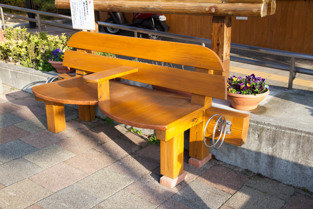「松山市道の駅風和里にベンチ型スタンドフリーを設置していただきました!サイクリングをより楽しめるようになりました。 風和里にお立ち寄りの際にはご活用ください!」